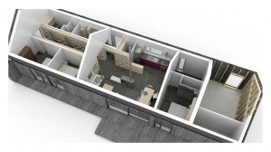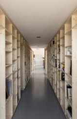 The plan of the house is organized into three areas. All of the living, dining and bedroom areas are located to the southern side of the plan. Running down the center of the plan is a central bookshelf / circulation zone, with the bathroom, wc and utility spaces located to the north. The long feature bookshelf located at the axis of the houses, helps to organize the plan, while also functionally providing lots of storage for books, art, pictures, plants, etc.